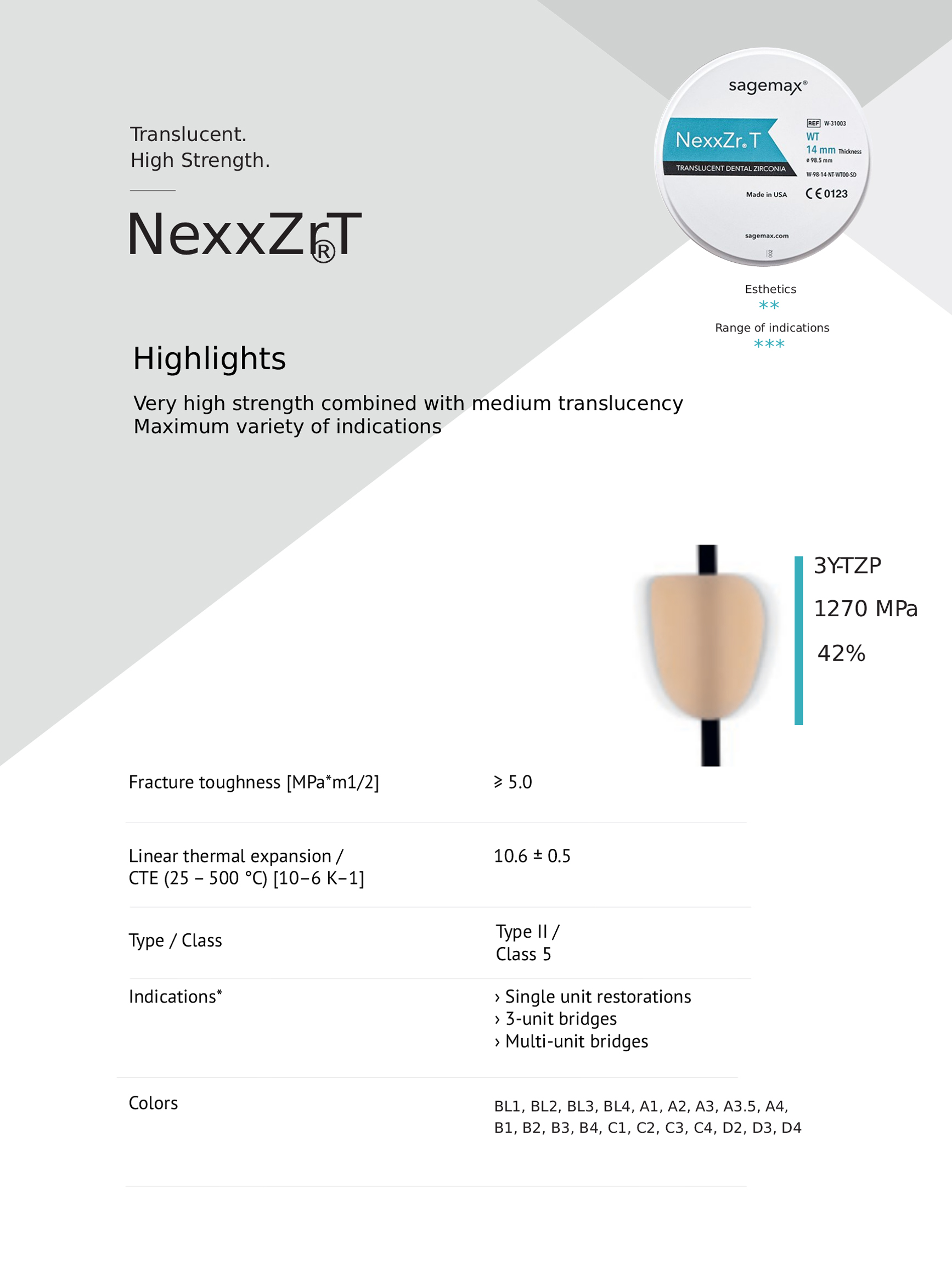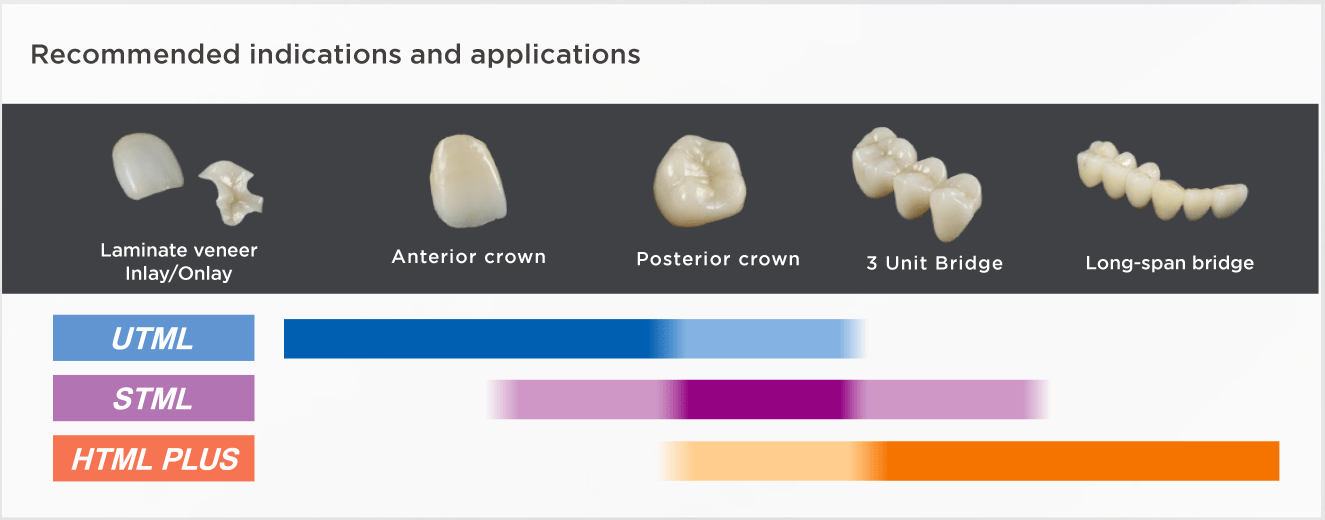 You can fabricate many restorations, from esthetic anteriors to posterior bridges by selecting the right translucency and mechanical properties*
